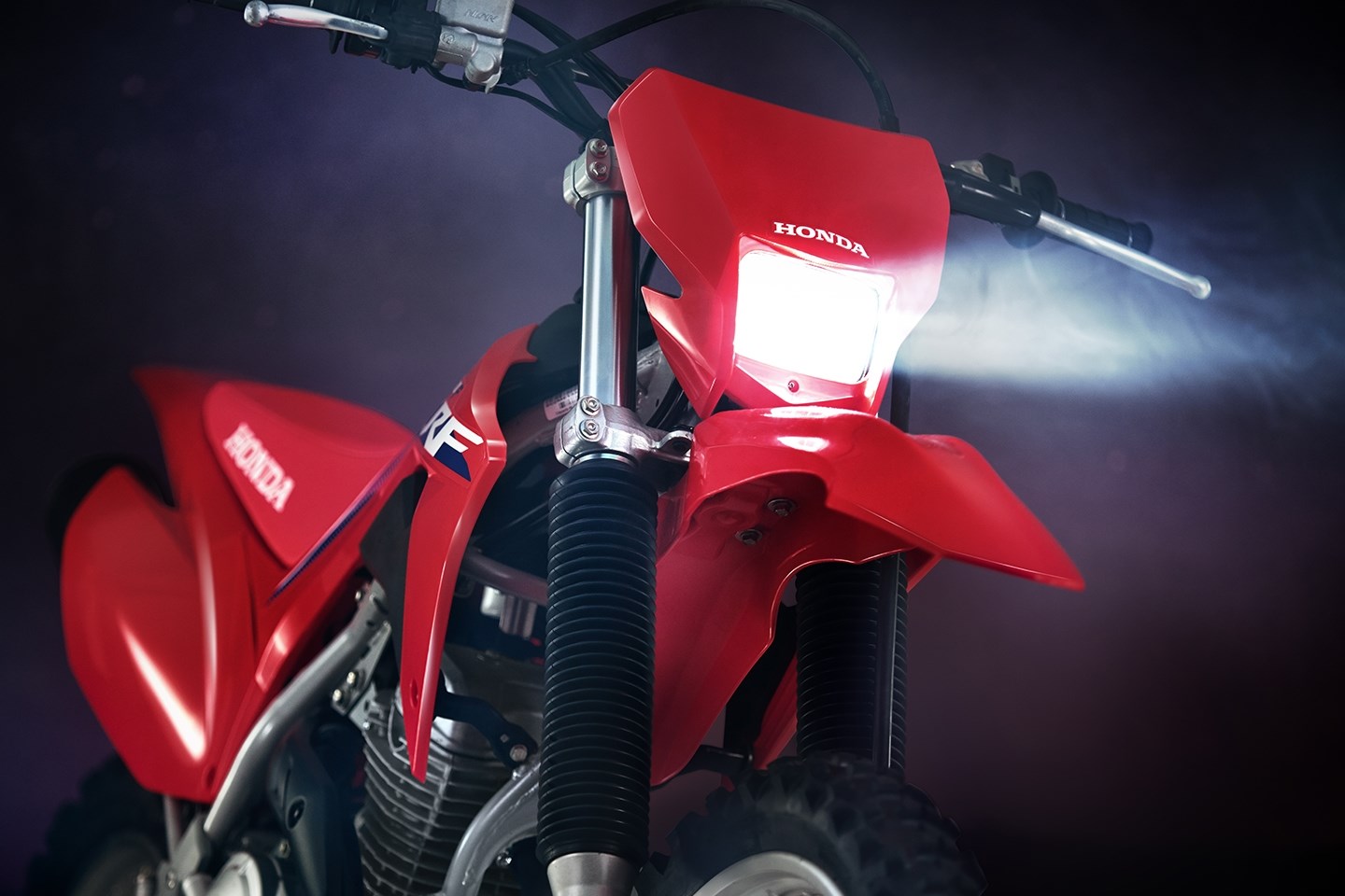 The twin-spar frame is lightweight and Honda tough. The electric starter makes getting up and running easy and the styling is right off our championship-winning CRF motocrossers.